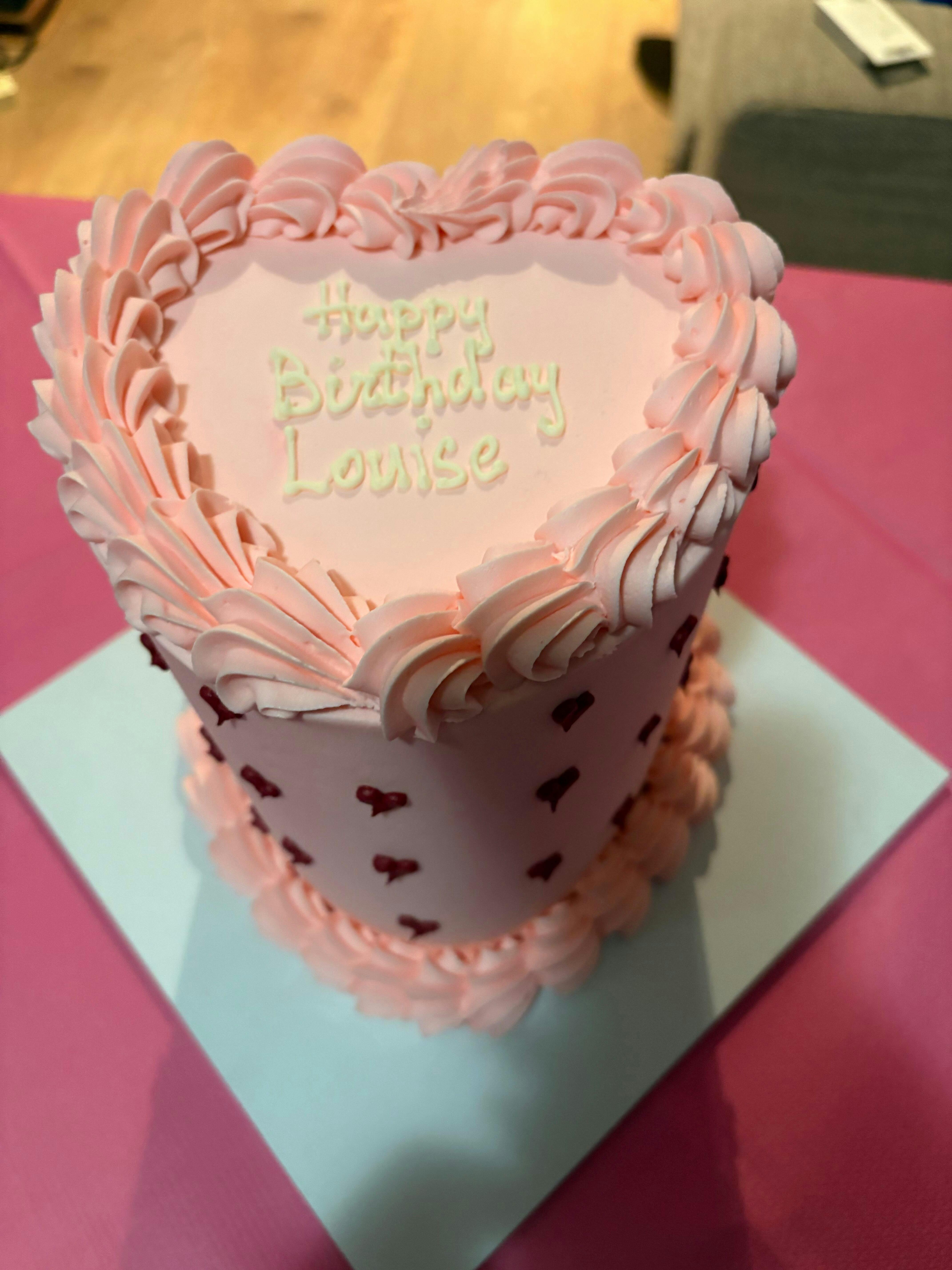 The All Heart Vintage Kitsch Heart Cake - Tall, swirled to perfection and finished with individually hand-piped heart emojis. We've taken our iconic vintage cakes to a whole new level of 70's kitsch, and this one screams unforgettable birthday party.