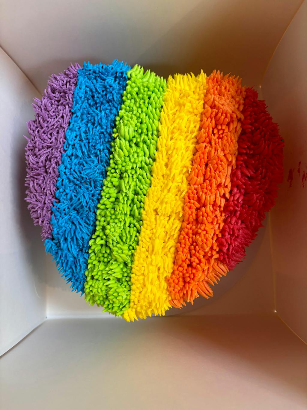A delectable bonkers birthday and celebration cake that screams JOY.. and psychadelic rainbow 70's style shaggy piping. Lovingly handmade by bakers who take cake way too serously for people who dont 🤣