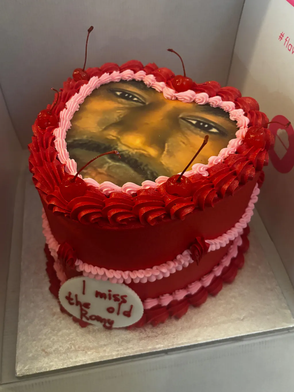 Now, not only can you customise the size, colours, piping, cherries🍒 and personalised message - you can have your favourite photo on top. We'll print it with high quality edible inks and give it centre stage on your Ultimate Bling Heart Photo Cake.